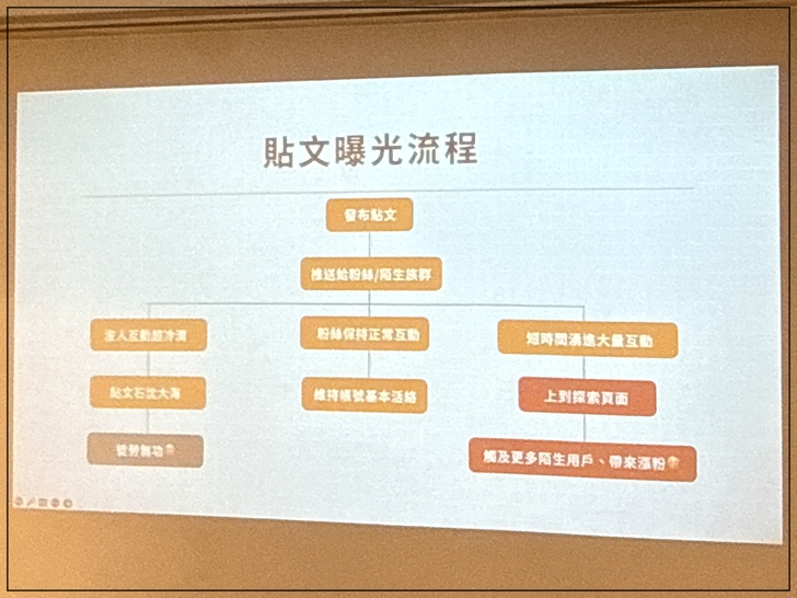 貼文曝光的流程,若能在短時間累積大量互動,就有機會上探索,接觸到更多用戶,進而漲粉。