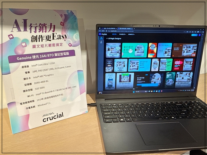 搭配美光記憶體、SSD的筆記型電腦,捷元代理,螢幕畫面是訊連的MyEdit。
