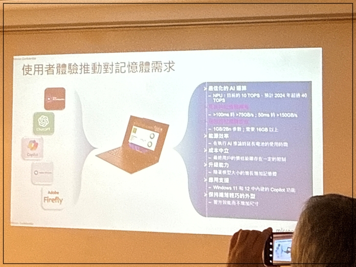 講座的部分我會簡單帶過,其實主要目的就是講到使用AI的時候需要更高速的記憶體及SSD來因應AI時代的高速運算,速度跟容量都會對於運算效能產生直接的影響。