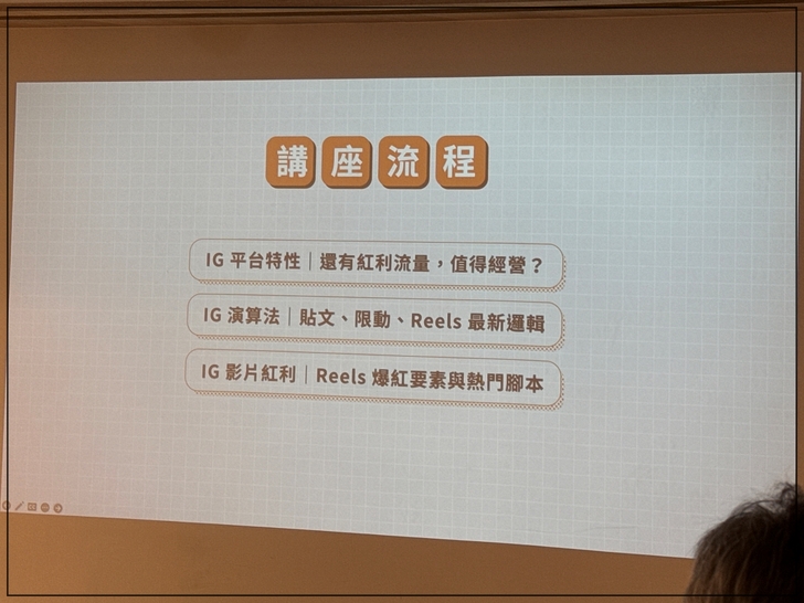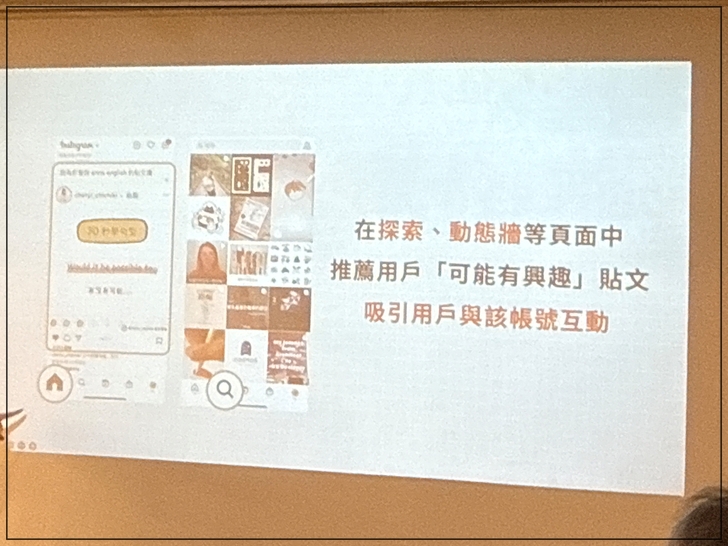講師經營的是知識型IG,會從平台特性、演算法、影片紅利來分析如何成功的經營IG。