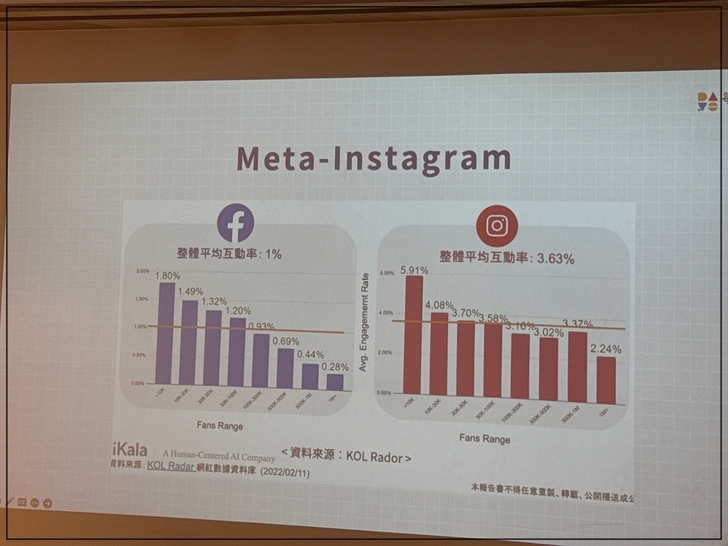 跟FB比起來,IG的整體互動率更好;FB當粉絲增多以後,互動率甚至都不到1%,而IG還有3.63%,當然這就是IG比FB更受商家青睞的原因。
