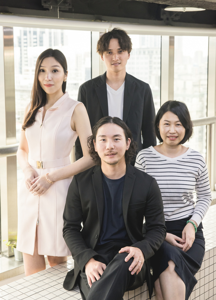 台灣微告總經理丸木勇人(前中)率領的團隊擁有豐富台日跨境行銷資源,左為台灣微告副總經理謝佳佳、右為副總經理黃鈺芬、後為中國微告CEO山田孝輝。(圖/台灣微告提供)