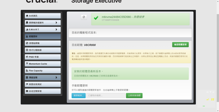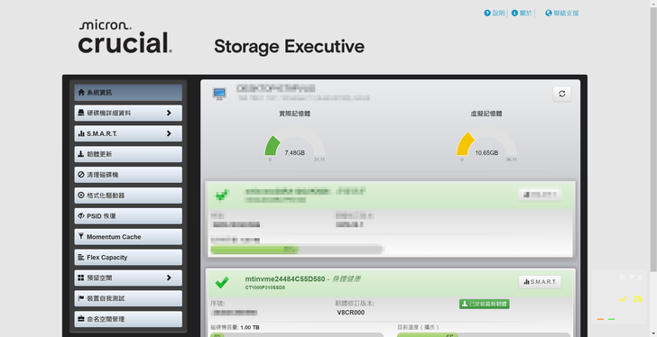 美光SSD還有一個便利點提供 Crucial Storage Executive 工具