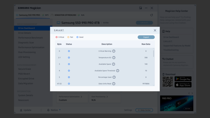 最近在測試 Samsung 990 PRO,順便看看 Samsung Magician,就是 Samsung 針對自家 SSD 推出的管理軟體,可以做到簡單的效能測試、SMART 檢測、韌體升級…等。不知道上次用 Samsung Magician 是什麼時候,順便來看看現在的功能、介面改得如何?
