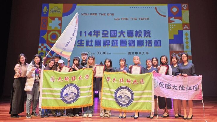 同時,僑光科技大學僑園大使社團也榮獲「技專校院組 服務性類 甲等獎」,進一步彰顯僑光學子在校園事務與公共服務上的積極投入與優秀表現。