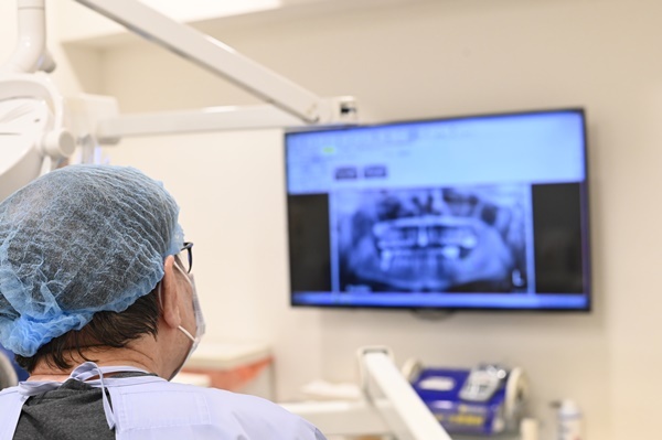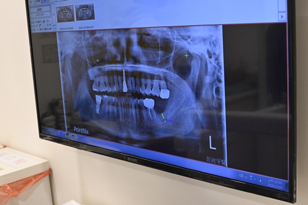 劉醫師在術前花了很多時間為我進行詳細的口腔評估,透過如圖所示的數位X光影像分析,清楚讓我了解自己的骨質狀況、缺牙位置與神經分佈,整個流程超專業卻也親切,完全打破了我對傳統植牙「看不懂就只能相信醫師說法」的印象。