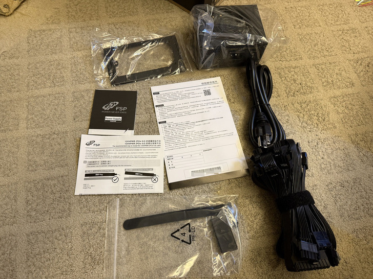 全模組化設計,特別的是提供PCIE 5.0的電源、想要裝張NV最新的顯卡也不用轉接,但可惜現在顯卡買不到啊!