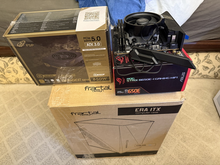 因為工作轉換跑道,許久沒玩一些電腦東西了,迭來工作壓力大,又手癢想買些東西玩玩,剛好朋友搬家有些東西要清掉,部份有ITX的零件,想一想很多年沒組ITX了,就來組台ITX吧,雖然想組ITX規格可以選部分M-ATX機殼或SFX-L或正常電源,但既然要組ITX,就全選最小尺寸的規格啦,機殼為Fractal的ERA ITX,板子為ROG Strix B650E-I Gaming Wifi,電源則是全漢的Dagger金鋼彈Pro 850W(SFX)