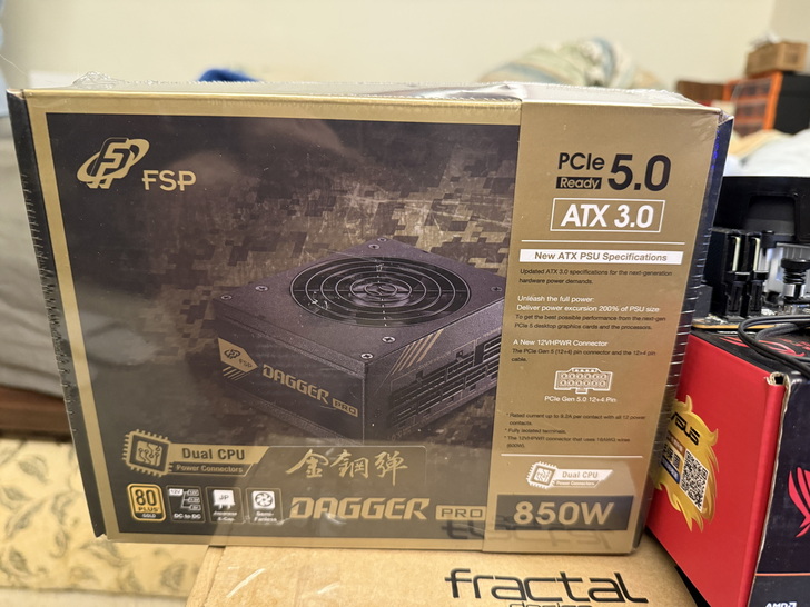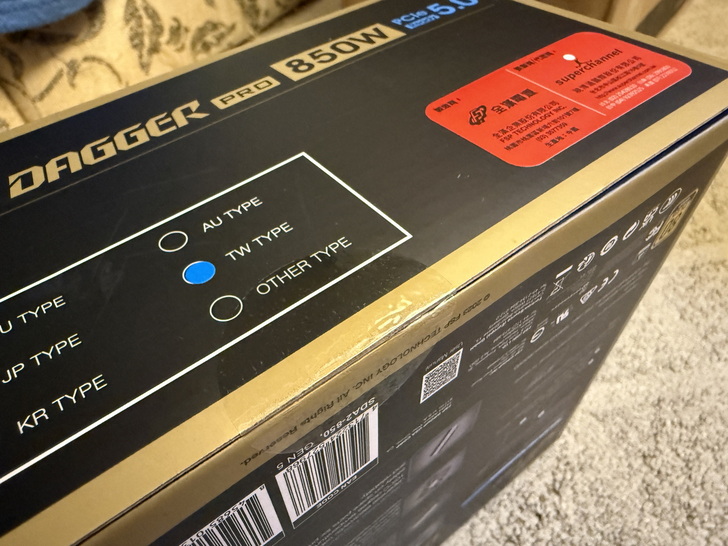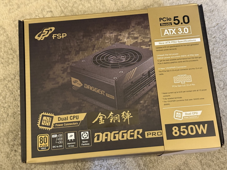 目前某屋的線上報價只有Apexgaming和全漢有PCIe 5.0,都是十年保,但價格差不多,雖然都有快換服務,但個人入手全漢的產品比較多,也較為信賴,當然是選擇Dagger金鋼彈Pro 850W,一到手看到這顆小巧的設計就覺得很不錯,簡單開箱給各位,謝謝收看