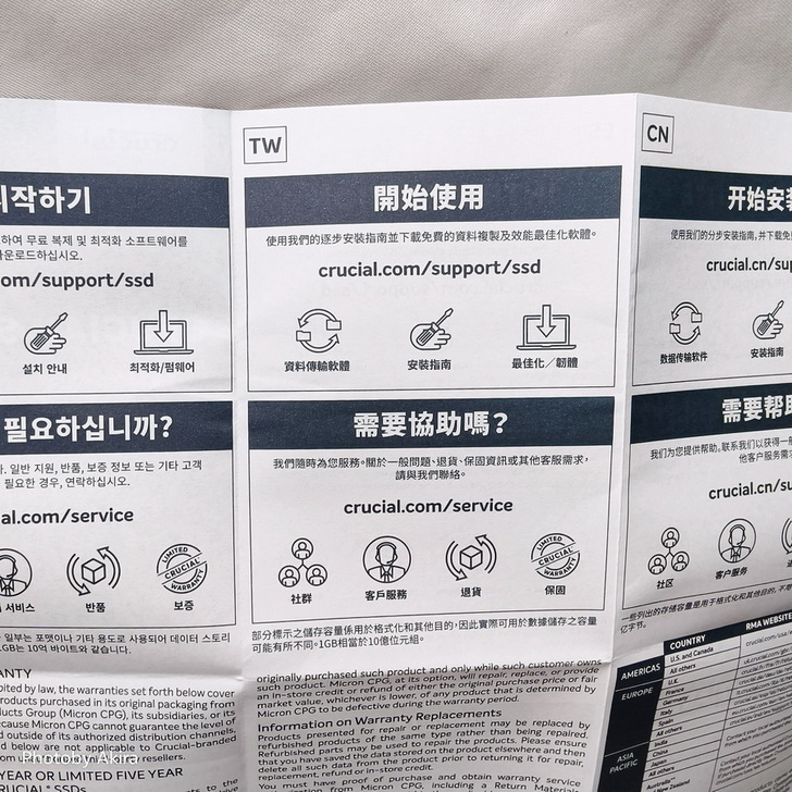 ▼ 說明書也是多國語言,上面印著 Crucial Storage Executive 軟體連結。