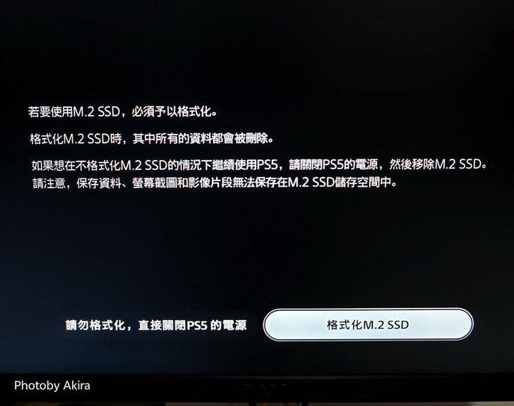 ▼ 裝上 Micron Crucial P310 1TB 開機後,PS5 會直接提示要格式化。