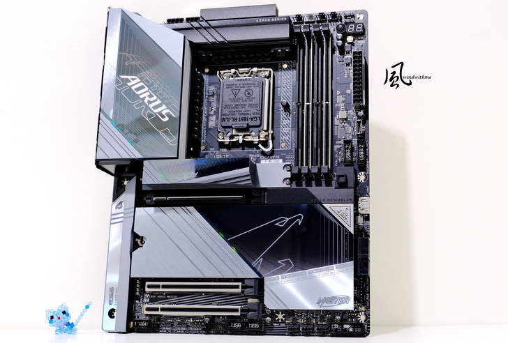 側邊GIGABYTE標誌為滑動側板設計,右邊白色透明LED燈條,將GIGABYTE標誌往左滑動創造變動且不同的視覺燈效。
