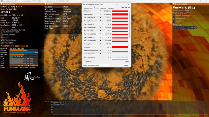 核心時脈2730 MHz (Reference: 2617 MHz)、10752 CUDA Cores;記憶體時脈30Gbps、GDDR7 16GB、256 bit。