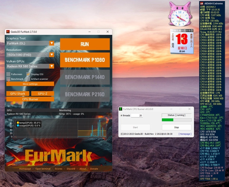 再拿出高壓的FurMark2的CPU Burner 一開下去直接飆破105度