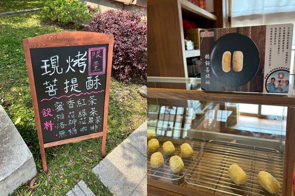 上個月和爸媽一起去花蓮散心,是我們久違的家族旅行,其中一站就選了我自己很想去很久的地方——將軍府1936園區,日式建築靜靜地立在大樹下,陽光從屋簷斜斜地灑進來,整個地方像是時間放慢了速度,一走進去心情也跟著沉靜下來,我爸還說:「這種地方喝茶配點心剛剛好」,我們就順著他的話走進園區裡的那間菩提餅舖。