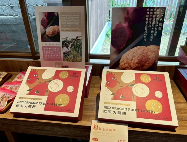 店員還推薦了他們得過獎的紅玉火龍餅,說是用玉里的有機火龍果做的,沒有添加色素或香料,連那淡粉色的外皮都是烘烤後自然產生的,我媽聽了就笑說:「那這個一定要試試看」,一打開真的覺得好漂亮,像一顆小太陽餅,咬下去是很細緻的果肉纖維和自然甜味,配上層層堆疊的酥皮,非常細膩精緻的點心!