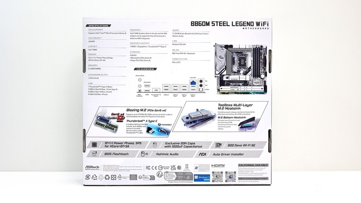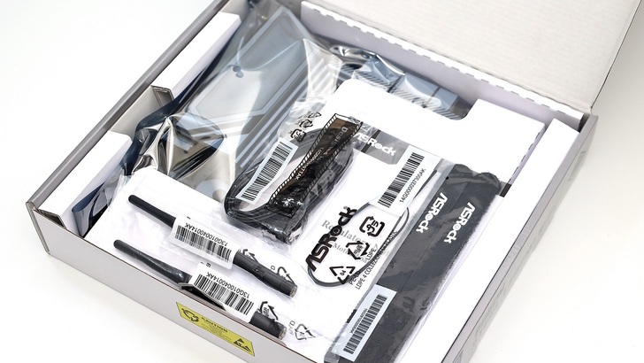 打開盒裝後,相較之印象 ASRock 配件滿多是放在主機板底下,或是在主機板上做個小盒子裝天線。B860M Steel Legend WiFi 的配件全部在打開盒裝的時候就可以看到,放置在主機板本體上面。