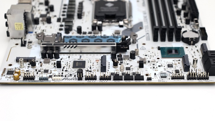 主機板整體以白色為主,金屬散熱片是銀白色的表面。主機板表面也以白色塗裝。對於預算有限,又想組白色 Intel 平台的使用者來說是可以考慮的選項。