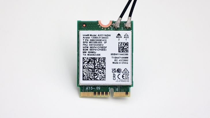 無線網卡為 Intel AX211NGW,支援 WiFi 6E,支援 2.4GHz、5GHz 和 6GHz。