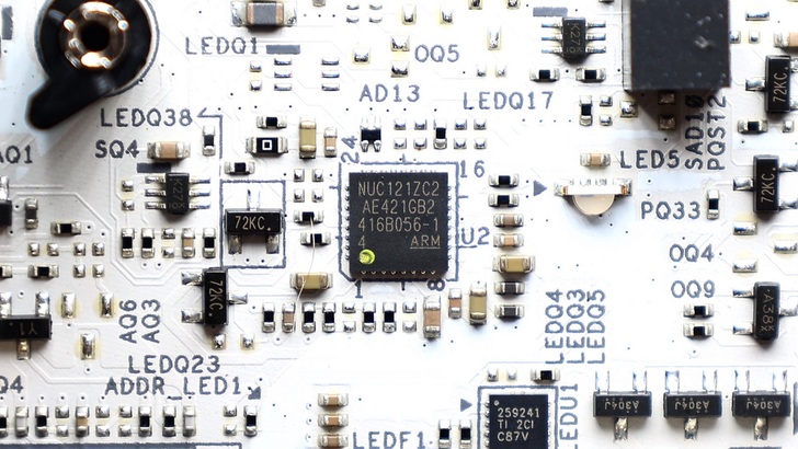 Nuvoton NUC121ZC2 為 RGB 燈光效果控制晶片。