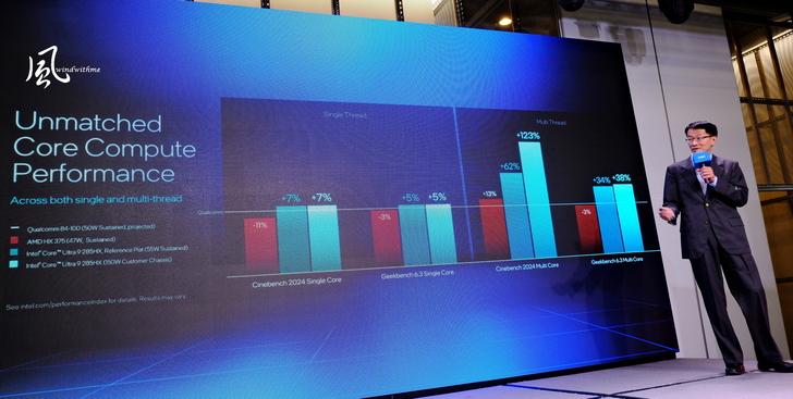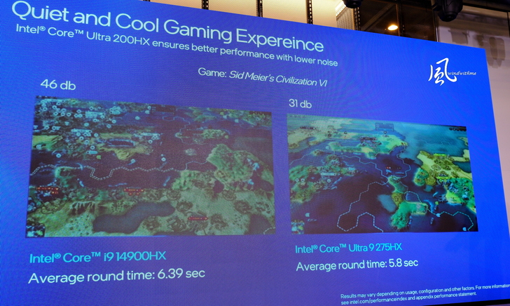 Core Ultra 200 H/HX採用最新製程除了能耗比最高提升40%,同時筆電續航力同時提升不少,另外同樣的使用環境也讓溫度下降,連帶讓噪音表現也會更好。