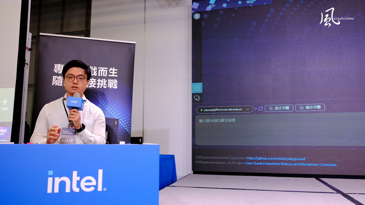 接著是Intel自製AI Playground 2.0專屬軟體的應用說明,支援內建Arc GPU為顯示卡與內顯都可以使用,以下各品牌展示區有些使用AI Playground。