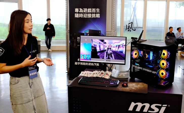 msi桌上型平台展示以AI驅動的直播軟體DigiME,透過網路攝影機擷取臉部與動作,即時同步使用者的表情與肢體動作至虛擬角色上,使直播或線上會議過程更自然。