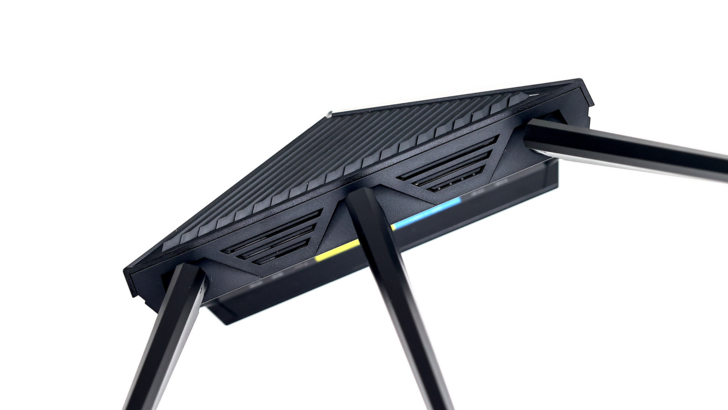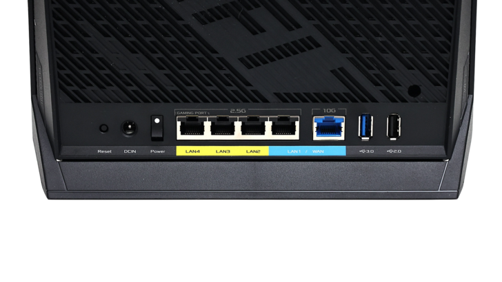 機身背後,依舊是大面積的散熱開孔,中間透的鏤空的 WiFi 7 字樣。底部是 I/O 和電源開關,與上一代的設計相同。不過這次有線網路升級滿有感的,從原本的 2.5GbE 升級成 10GbE。在無線網路規格從 WiFi 6 提升到 WiFi 7 的同時,有線網路也升級到 10GbE,但是定價才多幾百元,對於還沒買的人來說就會覺得很有吸引力。