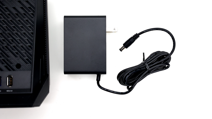 電源採用外置設計,電源也不算小顆,如果是八字不合的延長線,恐怕會佔用多個孔位。雖然現在中高階的 Router 也滿耗電,但以這個等級來說,完全是可以用更小顆一點的電源。