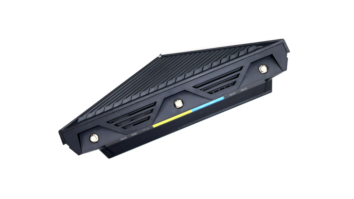 頂部還未裝上天線時的狀態,可以看到也有一些開孔幫助被動散熱。三個 SAM 接頭也間隔比較遠,天線比較不會打到。除了頂部的三根天線,內部還有一個天線。