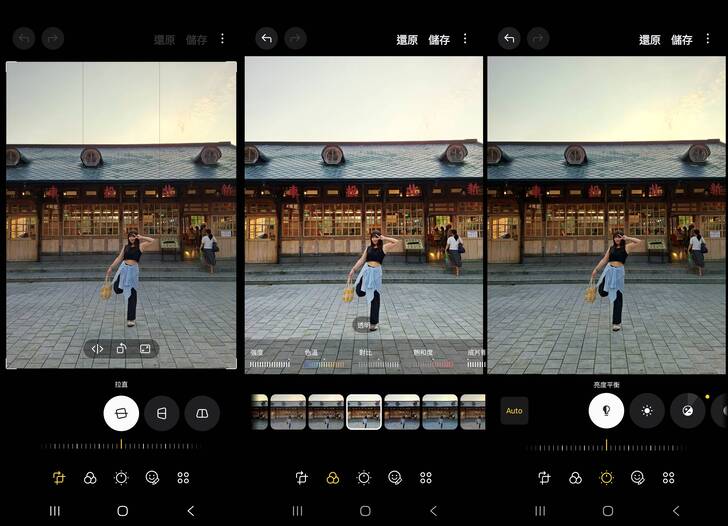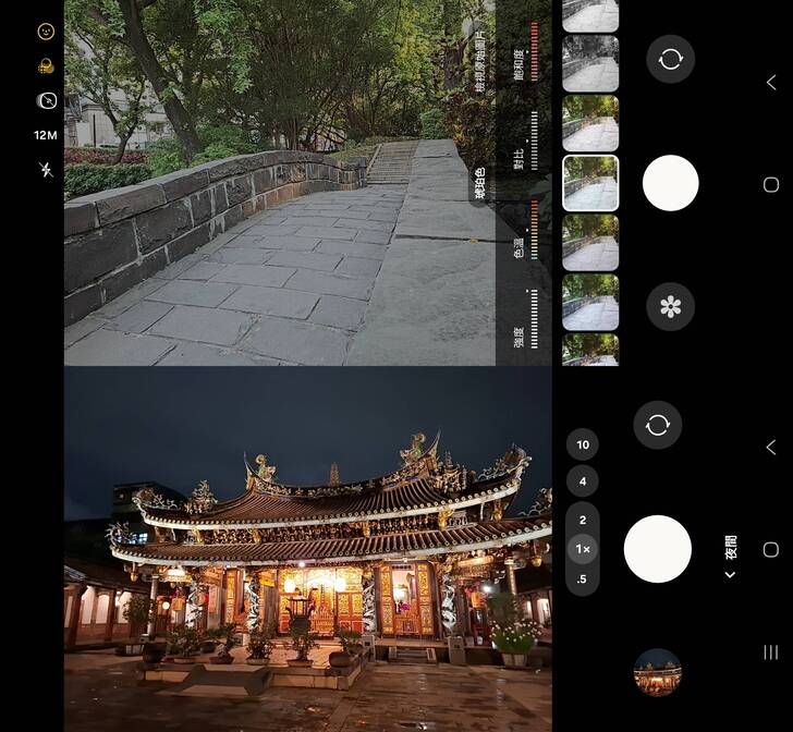拍照模式除了基本的自動模式,還能手動調整專業模式、濾鏡色調,夜拍模式也強化了低光源環境的成像品質,拍夜景效果非常讚!