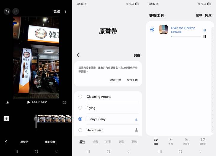 套用後會進入編輯模式,可以細部調整每段影片、加上背景音樂,內建音樂庫素材豐富好用!