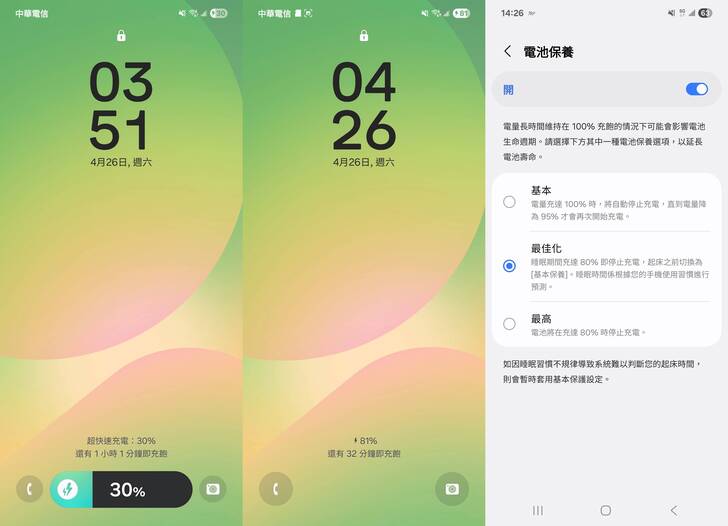電池配置5,000mAh大容量,再加上支援45W超快充,大約30分鐘就能從30%充到80%!還有電池保養模式,幫助延長電池壽命,超貼心!