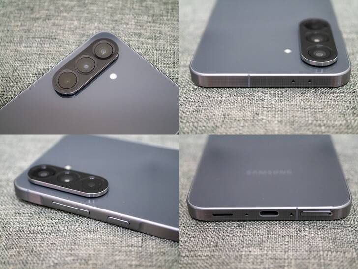 三顆鏡頭分別是50MP廣角、12MP超廣角以及微距鏡頭,不論是旅遊拍照、日常記錄或微距細節拍攝通通搞定!金屬邊框上細緻的髮絲紋也很有質感,按鍵集中在機身右側,SIM卡槽則設置在下方。