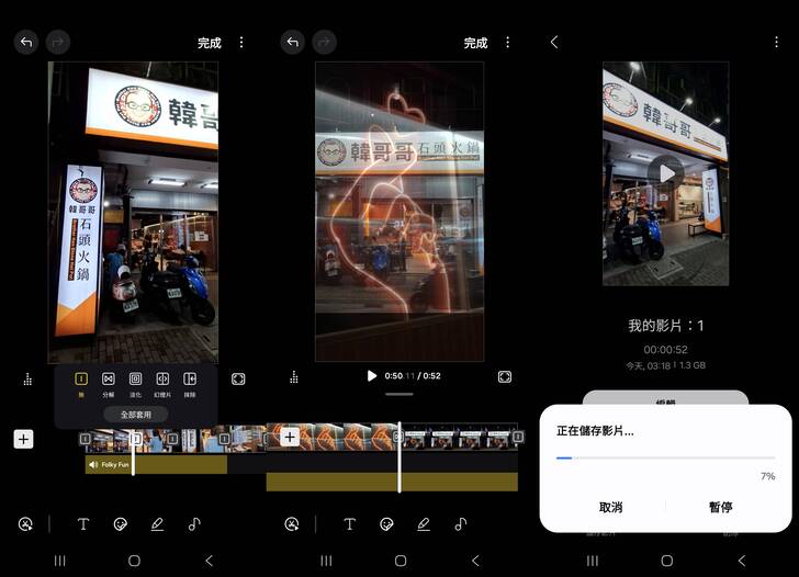 每段影片也都能單獨細調,像是修剪、特效、轉場等功能一應俱全,是很強大的隨身剪輯工具!