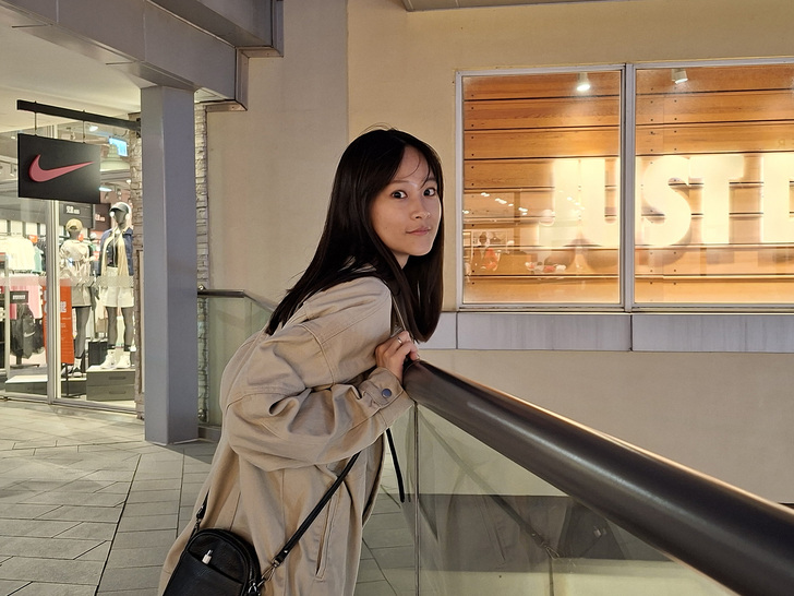 如果你是拍穿搭,又希望畫面帶點動態感,Galaxy A56也處理得不錯。它拍照時會自動偵測場景並對焦,就算人是動的,也能拍得蠻清楚,照片會有一種乾淨、空氣感的感覺,我自己也很喜歡。