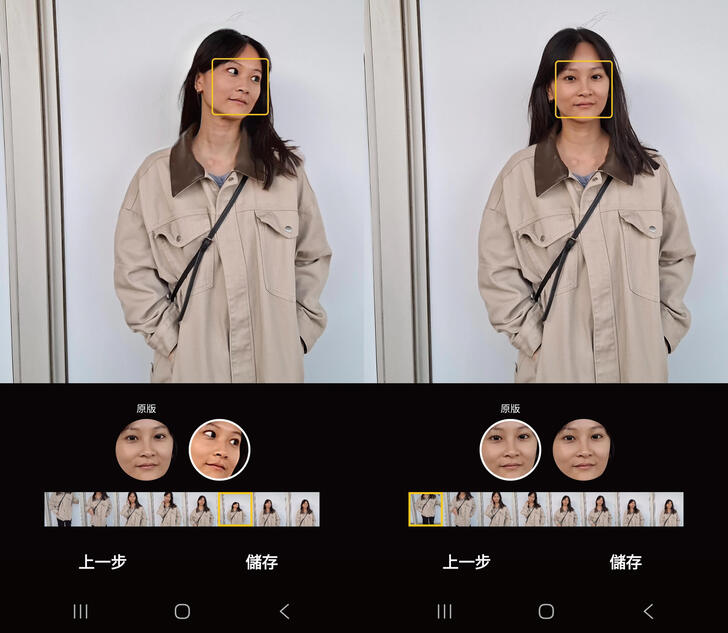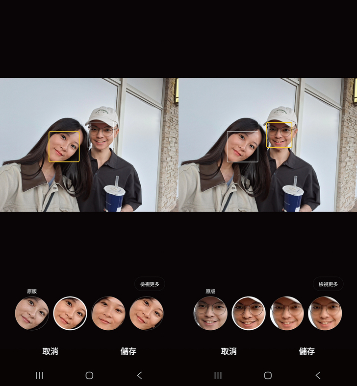 而且如果是兩個人一起入鏡也沒問題,它還能分別記錄不同的人臉,讓你各自選擇想要的表情來調整。覺得這功能根本是朋友聚會拯救合照的超讚功能(笑)。