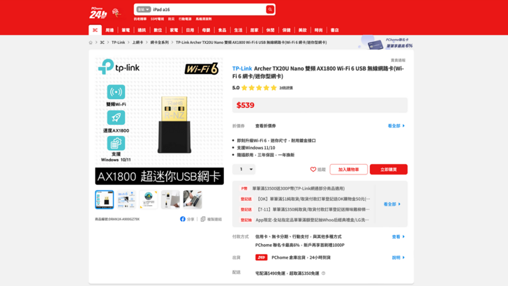 難道是為了便宜,所以盡量閹割?那這樣大家為什麼不買 WiFi 5 更便宜的就好?而網卡產品頁面經常也會看到「USB3 比 USB2 快十倍」這種滑坡說法,而沒有提到要考慮 WiFi 本身上限。