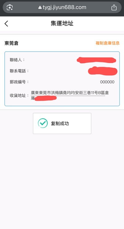↓在淘寶選好產品後,就到網頁裡直接複製倉庫地址,超適合我這種常怕填錯地址的人