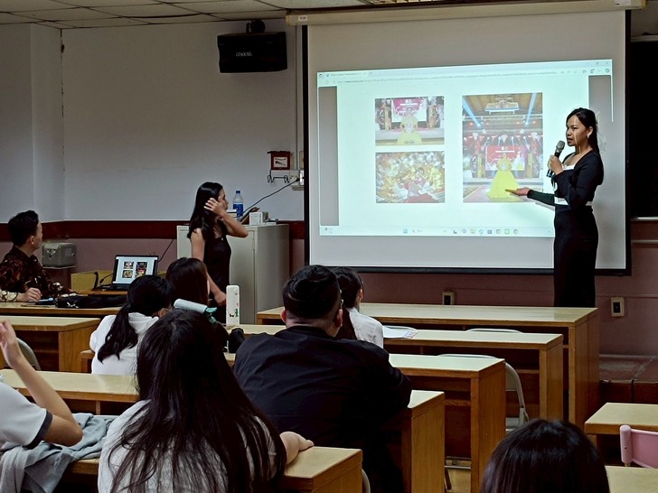 活動中,新民高中的學生以「台灣三日遊」為主題進行英語簡報,介紹台中與新竹的著名景點、美食文化與在地產業,展現對家鄉的觀察與表達能力。僑光科技大學的境外生則分別代表印尼、香港與菲律賓,以英文介紹各自的文化背景、宗教信仰與特色美食,讓高中生們在生動的互動中拓展國際視野。