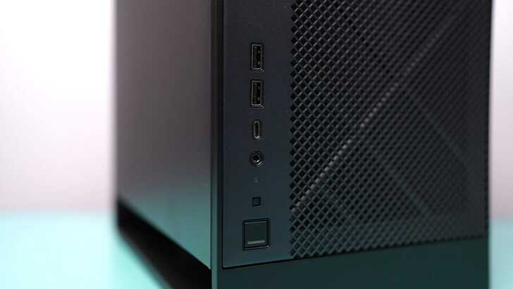 機殼前置有兩個 USB Type A 、一個 USB Type C 以及一個耳機麥克風插孔。