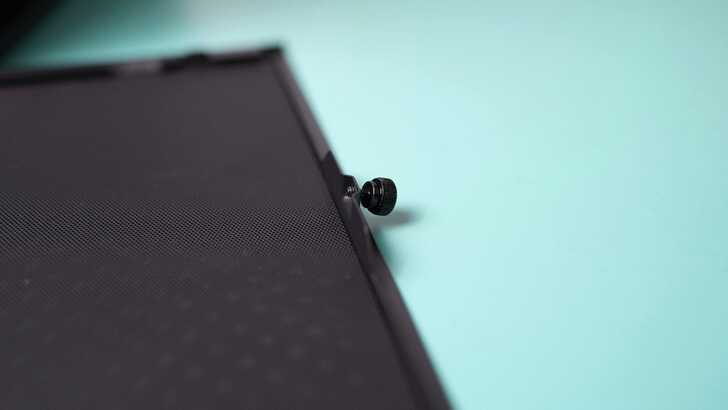 側板上的濾網是用磁鐵吸附在上面的,一樣相當方便用戶拆下來清潔。側板固定螺絲是採用手擰鬆不脫的設計,非常不錯。