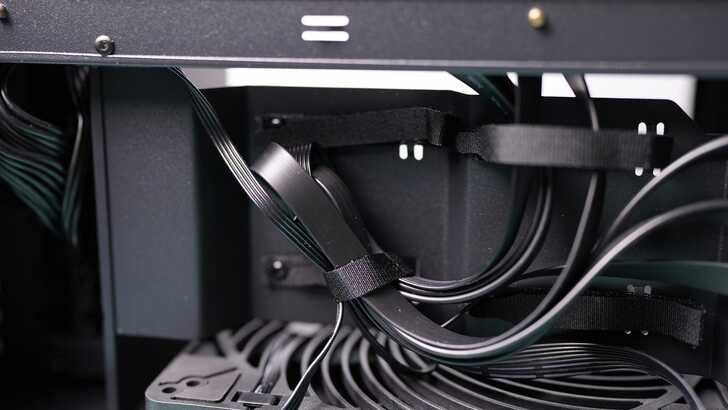 機殼內附幾組魔鬼沾整線帶,不需要再用塑膠綁帶固定你的線材。整線空間也給的蠻充足的。