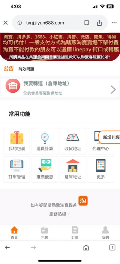 但因為我之前在淘寶買保鮮盒和收納櫃的時候是用「踏燕集運」