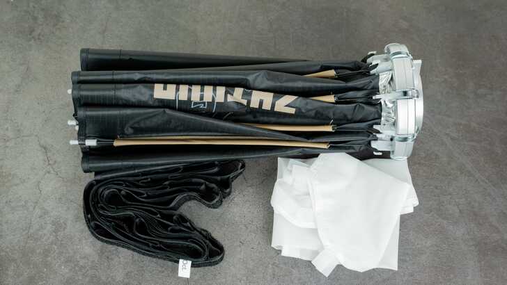 整個柔光箱是可以收納的,搭配附贈的收納袋,帶出門不成問題。