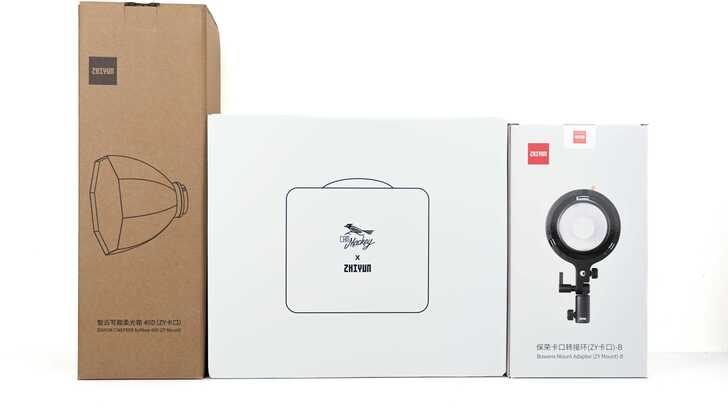 這次開箱的是智雲 MOLUS X100 RGB PRO 專業版套裝,額外包含了柔光照和保榮卡口轉接環。