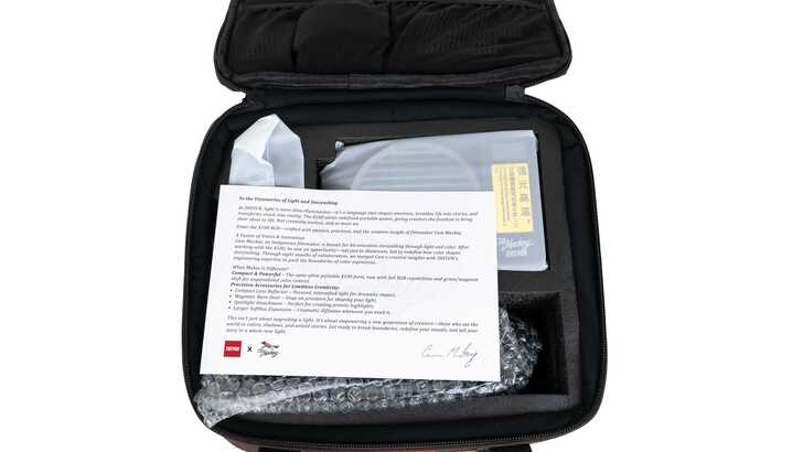 PRO 版套裝還有另一個配件,是保榮轉接頭,有了它,你就能夠將這台補光燈轉接到所有使用保榮卡口的配件,包含柔光箱等。畢竟 MOLUS X100 RGB 的 ZY 卡口是為了可攜性設計的,整體大小比較小一點。