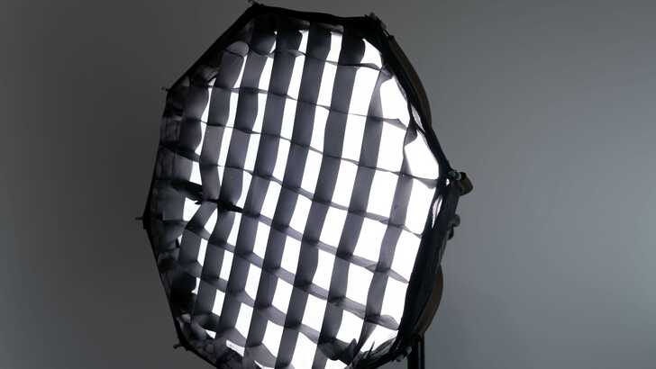 像是菲涅耳透鏡和四葉檔光板,這兩個配件是實現精準控光的關鍵。菲涅耳透鏡負責將光線聚焦,形成一道更強、更集中的硬質光光束,但同時又有著柔和均勻的邊緣。接著,再由四葉擋光板負責切割塑形,將光線限制在需要的範圍內,避免不必要的光線溢出。