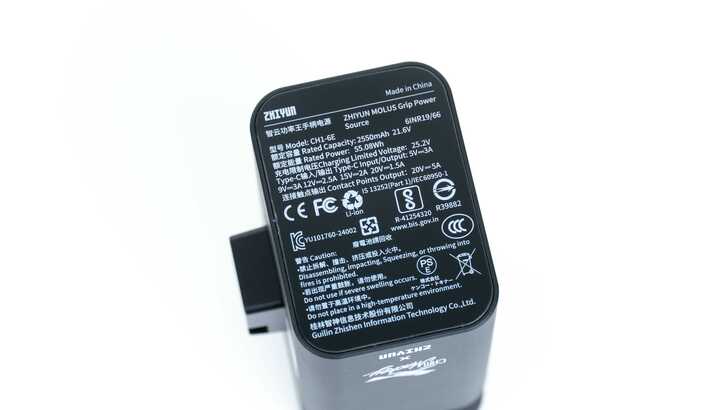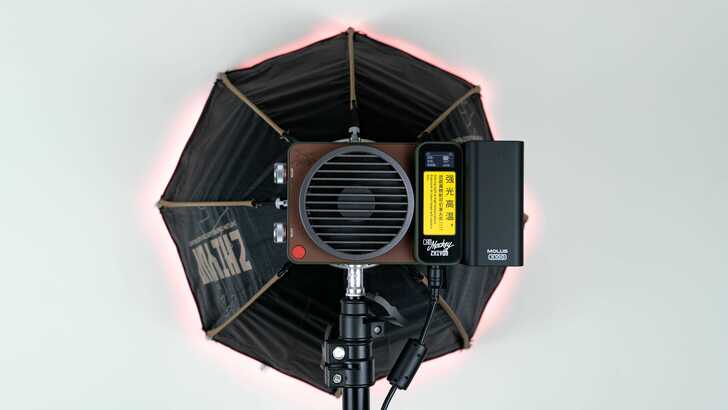 考慮到棚內的使用需求,實際上 MOLUS X100 RGB 也可以透過電源供應器供電,電源規格是 24V 120W。在外的話,機身也接受 USB-C PD 100W 的輸入。因此別看這款補光燈可以吃電池,外表又如此小巧精緻,真發威也是相當暴力的。
