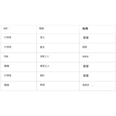 給定一個新病人,是一個打噴嚏的建築工人,計算他患感冒的機率。